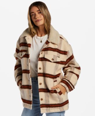 Rock this oversized junior's jacket from Billabong to take your fashion game to "stripe-tacular" heights.